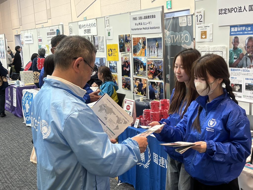2月7・8日 梅田スカイビルで開催された第33回ONE WORLD FESTIVAL~今こそ想う みんなのいのち~に国連WFP協会も出展し、そのお手伝いのボランティアとしてブラ★ボラが参加しました。非常に多くのNGO・NPO、国際機関、政府機関、教育機関、企業等が参加しているイベントで、環境破壊や難民、貧困、人権侵害など地球で起きているさまざまな問題を知ってもらうというイベントでした。